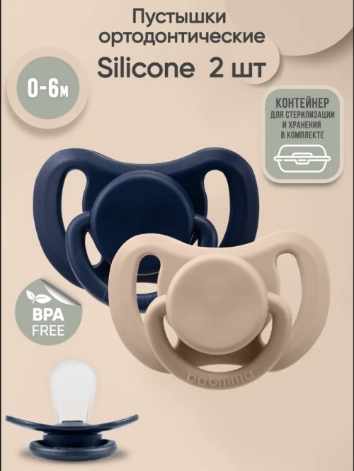 Набор силиконовых пустышек (0-6мес) 2 шт Navy/Hazelnut