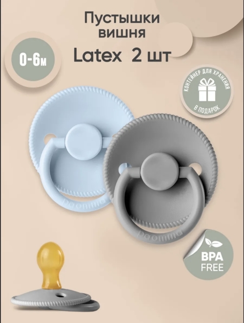 Комплект пустышек из латекса S (0-6мес) Baby blue/Light grey