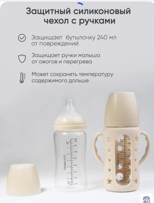 Силиконовый чехол для стеклянной бутылочки 240ml Цена: 2700 тг Цвет: Almond milk